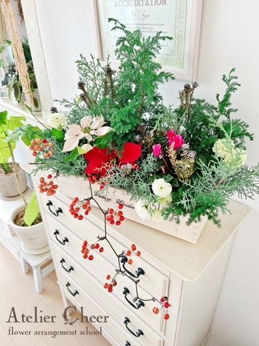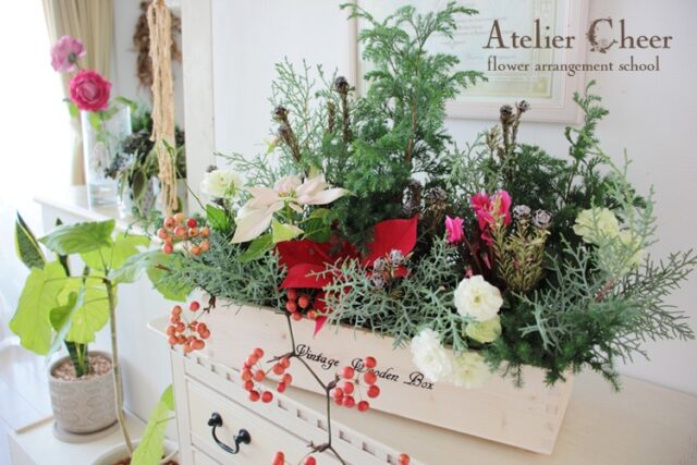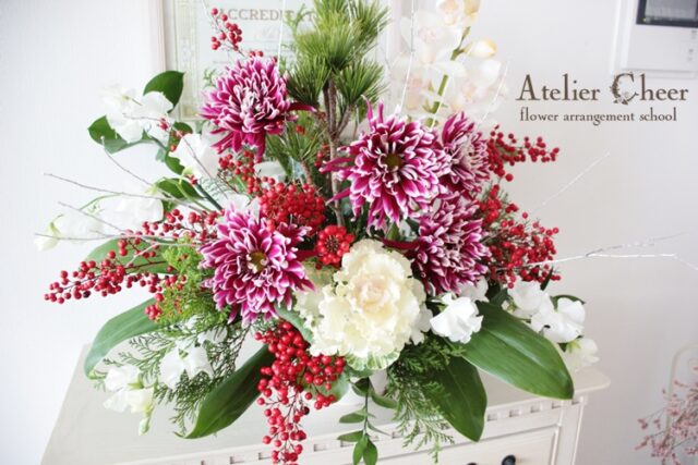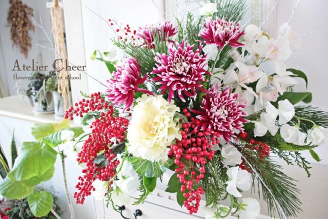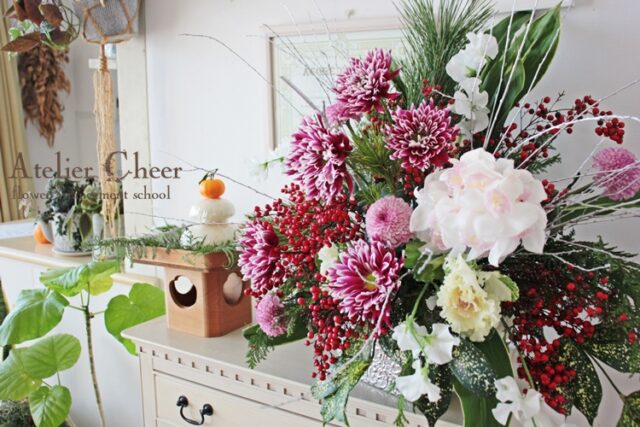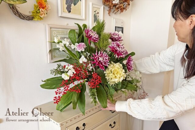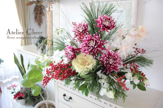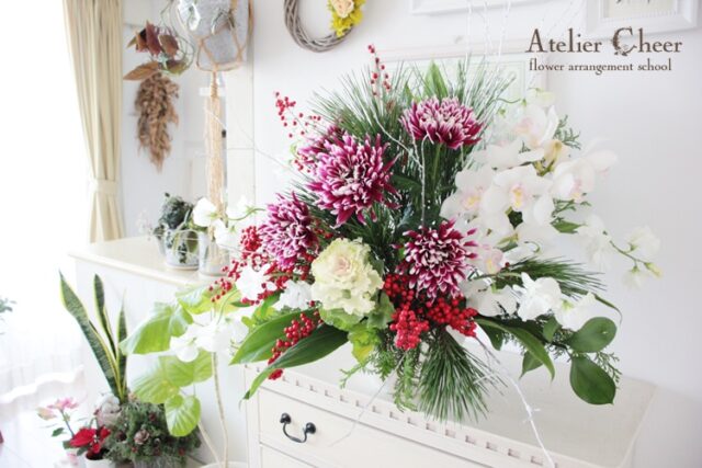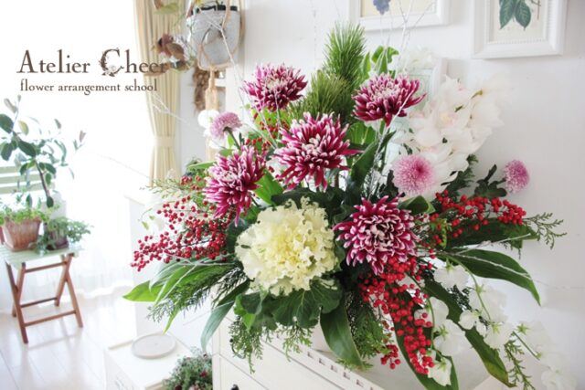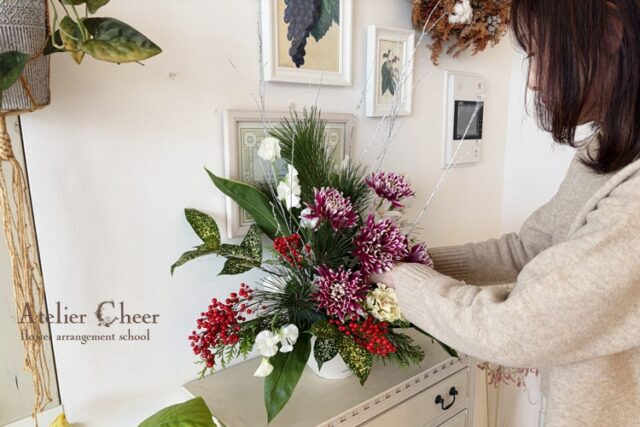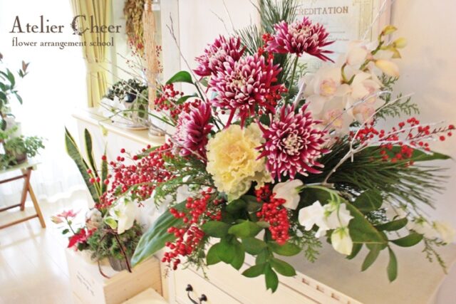 アトリエチアーでは、毎年年末に生花でお正月レッスンをしています。