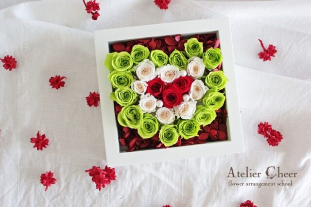 イタリア料理店の開店のお祝いにプリザーブドフラワーのフレームアレンジ