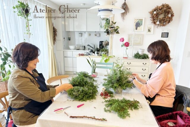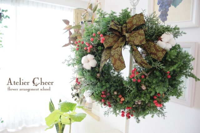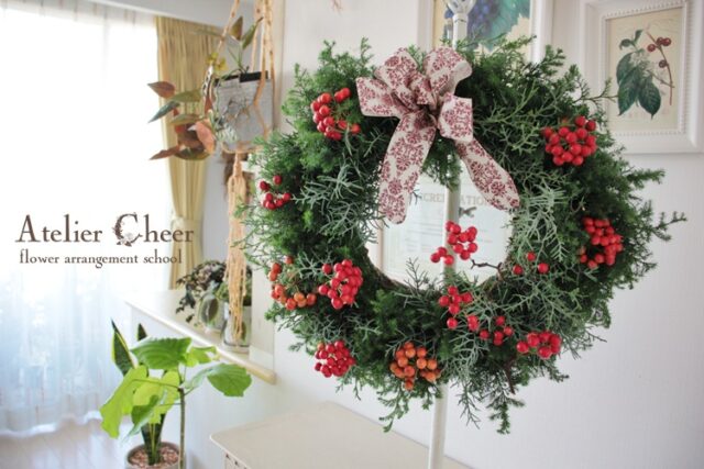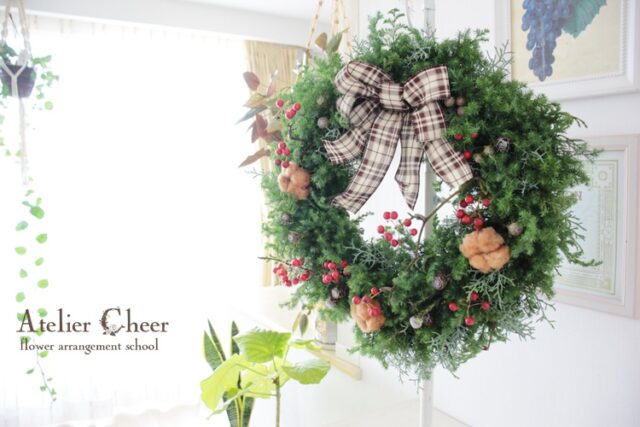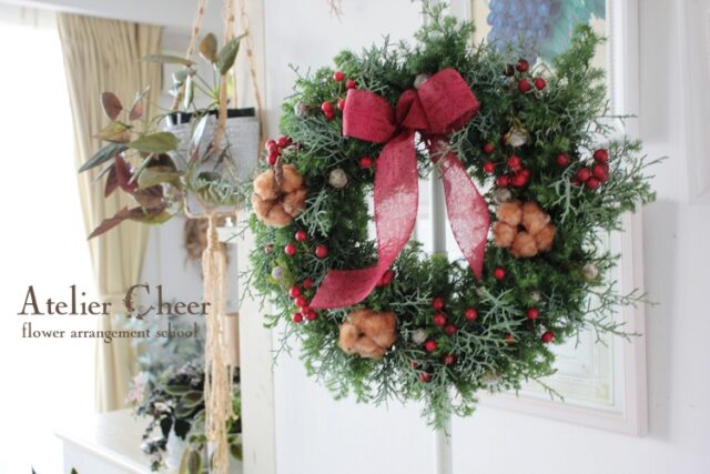クリスマスリースのレッスンには、一般の方も単発レッスンとして募集しています。