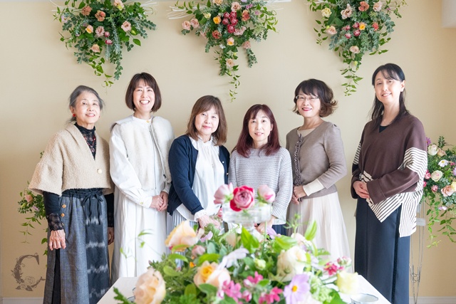 この作品展が、これから花の仕事を希望されている会員さん、とくに「自宅で教室開校」を目指す方にとって、少しでもヒントや励まし、参考になれば何よりです。